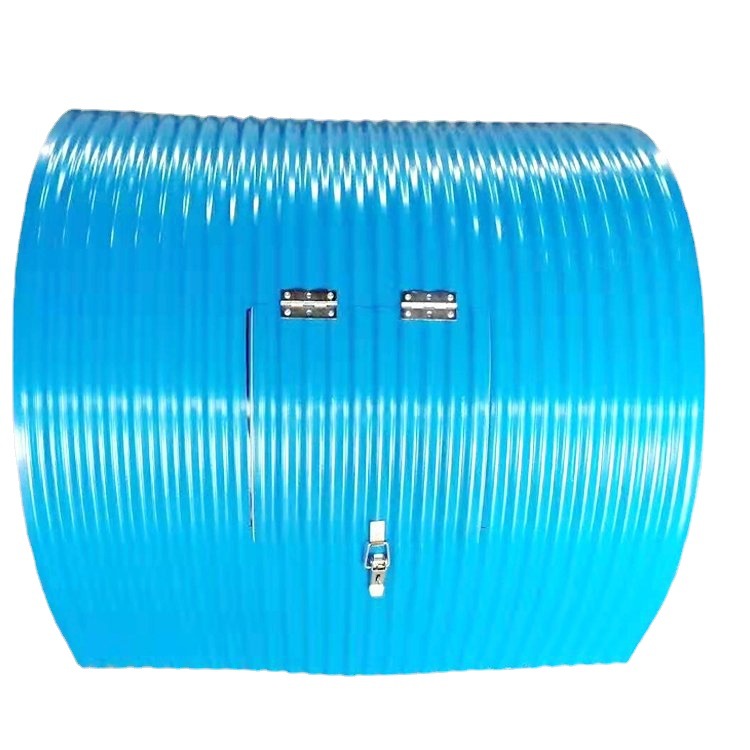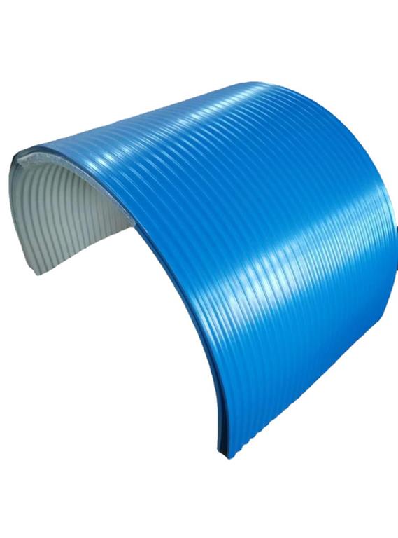 彩钢板防雨罩分两种,固定罩和开闭式罩均由镀锌瓦楞钢板或彩色涂层钢板制成(订货时须指明),一般每8个罩位中设7个固定罩、1个开闭式罩,也可两种罩交替排列。安装时,将开闭式罩压在左右两个相邻的固定式罩上,其重合长度为一个波距或两个波距。注意将开闭式罩有铰链的一侧置于输送机非通行边,而将有锁扣的一侧置于输送机通行边作为固定输送机罩的骨架为Z型钢,其长度与输送机罩安装长度相等。将Z型钢焊接在输送机架的两侧槽钢或小角钢上。将防雨罩从机架的一端向另一端安装,安装时防雨罩上严禁站人,勿用力撞击或敲打。用自攻钉或钩钉将防雨罩固定在Z型钢上(矩形管上),每片不少4个固定点。每隔10片也可安装1片观察窗罩,方便维修或查看。